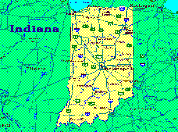 موقعها في جنوووووووب انديانا إلى الغرب تقريبا ..