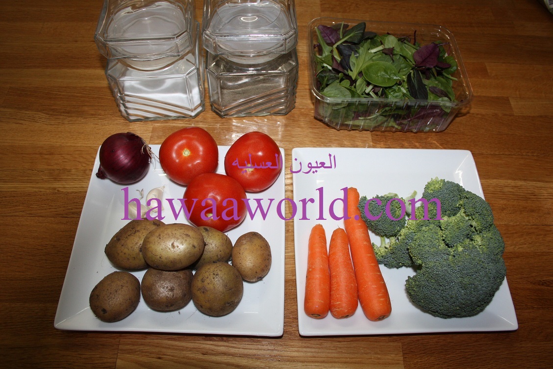 بروكلي _ جزر _ بندوره _ بصل أحمر _ 2 ف توم _ ملح, فلفل, ماجي باودر هيك بدي اترجمها لحتى تفهموها كتير
