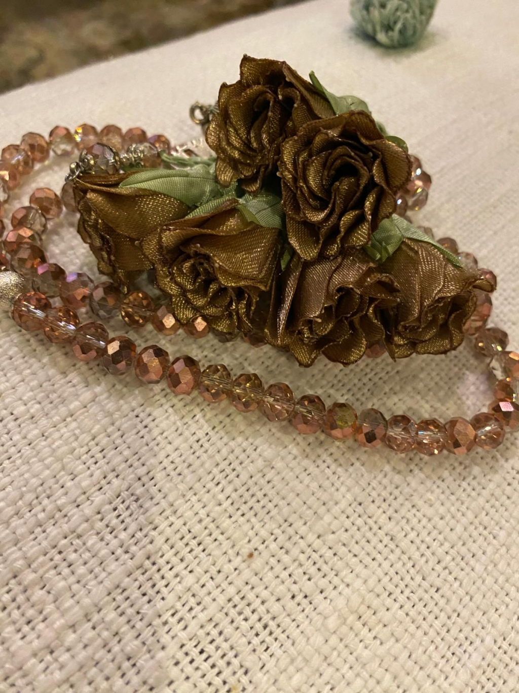 مسباح ذهبي ينتهي بباقة ورد بنفسجي من القماش أشبه بالورد المجفف آخر صيحة !! !! نحن .. إلى أين ؟!!