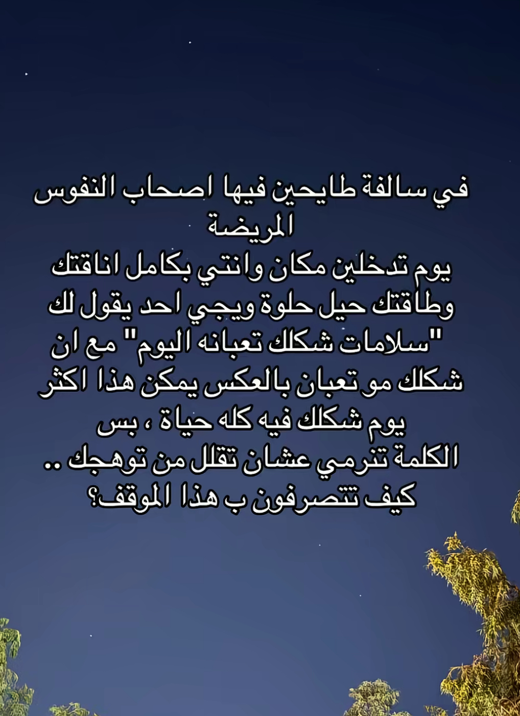ليه نشوف أشخاص ملتزمين و صادقين و تعبانين على أنفسهم وأخلاقهم وفي النهاية يوقفون على الهامش؟ بينما اللي يعرف ينسّق صورته ويبني علاقات ويجامل الصح انه يترقى ويُقدَّم وينقال عنه ((ناجح اجتماعيًا)) هل المشكلة في الطيبين لأنهم ما يعرفون... المزيد