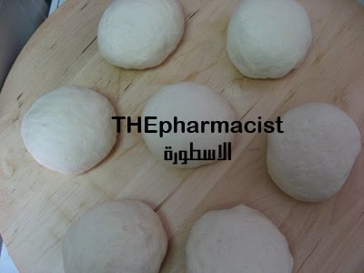 بعد تخمرها تقطع العجينة وتشكل الى كور بحجم كرة المضرب